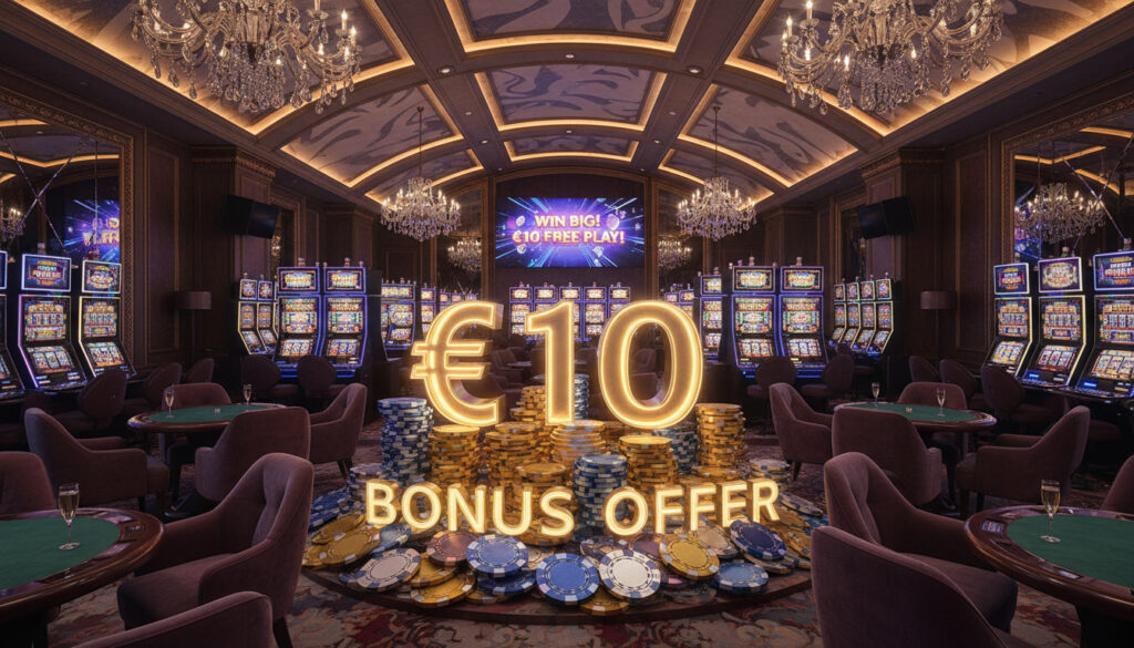 En 10 euro gratis bonus uten innskudd gis som enten bonuspenger (€10) eller 10–20 gratisspinn. Når du registrerer deg, blir bonusen vanligvis kreditert automatisk på utvalgte spilleautomater. Du kan deretter spille for bonuspengene eller gratisspinnene. Eventuelle gevinster er underlagt omsetningskrav før uttak.