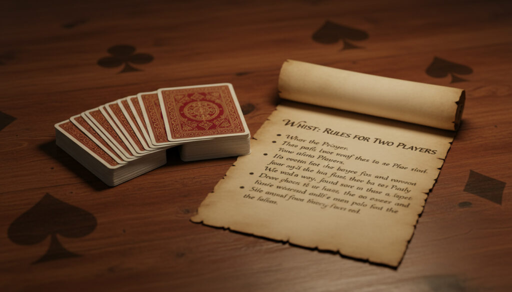 Tomanns Whist Regler – et raskt stikkspill for to spillere med en standard 52-korts kortstokk. Spillet krever taktikk, strategi og nøyaktig poengtelling uten bytter, meldinger eller trumf.